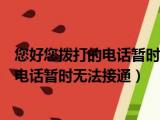 大家好,小活来为大家解答以上的问题。您好您拨打的电话暂时无法接通请稍后再拨,您好您拨打的电话暂时无法接通这个很多人还不知道,现在让我 浏览全文>>