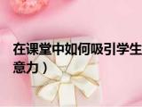 大家好,小活来为大家解答以上的问题。在课堂中如何吸引学生的注意力,课堂上如何吸引学生的注意力这个很多人还不知道,现在让我们一起来看看 浏览全文>>
