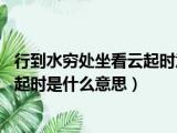 大家好,小活来为大家解答以上的问题。行到水穷处坐看云起时意思是什么意思,行至水穷处 坐看云起时是什么意思这个很多人还不知道,现在让我 浏览全文>>