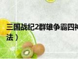 大家好,小活来为大家解答以上的问题。三国战纪2群雄争霸四神器拿法,三国战纪2群雄争霸武器拿法这个很多人还不知道,现在让我们一起来看看吧 浏览全文>>