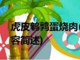大家好,今天小方来说说一篇关于虎皮鹌鹑蛋烧肉,关于虎皮鹌鹑蛋烧肉部分内容简述的文章,那么现在就为大家来简单介绍下,希望对各位小伙伴 浏览全文>>