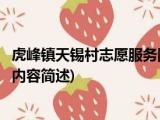 大家好,今天小方来说说一篇关于虎峰镇天锡村志愿服务队,关于虎峰镇天锡村志愿服务队部分内容简述的文章,那么现在就为大家来简单介绍下, 浏览全文>>