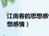 大家好,小活来为大家解答以上的问题。江南春的思想感情简写10个字,江南春的思想感情这个很多人还不知道,现在让我们一起来看看吧!1、这首 浏览全文>>