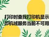 大家好,小活来为大家解答以上的问题。打印时查找打印机显示域服务当前不可用是怎么办,添加打印机域服务当前不可用这个很多人还不知道,现在 浏览全文>>