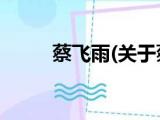 大家好,今天小方来说说一篇关于蔡飞雨,关于蔡飞雨部分内容简述的文章,那么现在就为大家来简单介绍下,希望对各位小伙伴们有所帮助。 1、 浏览全文>>