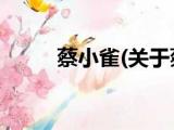 大家好,今天小方来说说一篇关于蔡小雀,关于蔡小雀部分内容简述的文章,那么现在就为大家来简单介绍下,希望对各位小伙伴们有所帮助。 1、 浏览全文>>