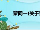 大家好,今天小方来说说一篇关于蔡同一,关于蔡同一部分内容简述的文章,那么现在就为大家来简单介绍下,希望对各位小伙伴们有所帮助。 1、 浏览全文>>