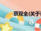 大家好,今天小方来说说一篇关于蔡双全,关于蔡双全部分内容简述的文章,那么现在就为大家来简单介绍下,希望对各位小伙伴们有所帮助。 1、 浏览全文>>