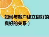 大家好,小活来为大家解答以上的问题。如何与客户建立良好的关系谈谈你的看法,如何与客户建立良好的关系这个很多人还不知道,现在让我们一起 浏览全文>>