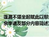 大家好,今天小方来说说一篇关于蓬漏不堪坐起赋此以慰余李诸友,关于蓬漏不堪坐起赋此以慰余李诸友部分内容简述的文章,那么现在就为大家来 浏览全文>>