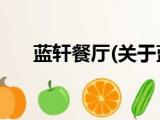 大家好,今天小方来说说一篇关于蓝轩餐厅,关于蓝轩餐厅部分内容简述的文章,那么现在就为大家来简单介绍下,希望对各位小伙伴们有所帮助。 浏览全文>>