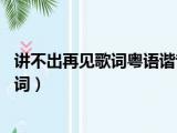 大家好,小活来为大家解答以上的问题。讲不出再见歌词粤语谐音歌词谐音,讲不出再见 粤语谐音歌词这个很多人还不知道,现在让我们一起来看看 浏览全文>>