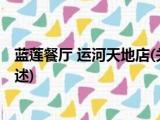 大家好,今天小方来说说一篇关于蓝莲餐厅 运河天地店,关于蓝莲餐厅 运河天地店部分内容简述的文章,那么现在就为大家来简单介绍下,希望 浏览全文>>