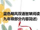 大家好,今天小方来说说一篇关于蓝色飓风双语智慧阅读·九年级,关于蓝色飓风双语智慧阅读·九年级部分内容简述的文章,那么现在就为大家来 浏览全文>>