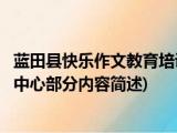 大家好,今天小方来说说一篇关于蓝田县快乐作文教育培训中心,关于蓝田县快乐作文教育培训中心部分内容简述的文章,那么现在就为大家来简单 浏览全文>>