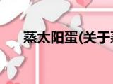 大家好,今天小方来说说一篇关于蒸太阳蛋,关于蒸太阳蛋部分内容简述的文章,那么现在就为大家来简单介绍下,希望对各位小伙伴们有所帮助。 浏览全文>>