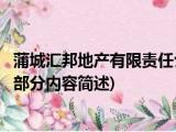 大家好,今天小方来说说一篇关于蒲城汇邦地产有限责任公司,关于蒲城汇邦地产有限责任公司部分内容简述的文章,那么现在就为大家来简单介绍 浏览全文>>