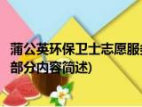 大家好,今天小方来说说一篇关于蒲公英环保卫士志愿服务队,关于蒲公英环保卫士志愿服务队部分内容简述的文章,那么现在就为大家来简单介绍 浏览全文>>