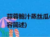 大家好,今天小方来说说一篇关于蒜蓉鲍汁蒸丝瓜,关于蒜蓉鲍汁蒸丝瓜部分内容简述的文章,那么现在就为大家来简单介绍下,希望对各位小伙伴 浏览全文>>