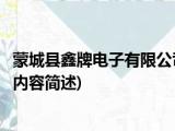大家好,今天小方来说说一篇关于蒙城县鑫牌电子有限公司,关于蒙城县鑫牌电子有限公司部分内容简述的文章,那么现在就为大家来简单介绍下, 浏览全文>>