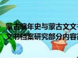 大家好,今天小方来说说一篇关于蒙古编年史与蒙古文文书档案研究,关于蒙古编年史与蒙古文文书档案研究部分内容简述的文章,那么现在就为大 浏览全文>>