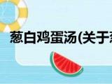 大家好,今天小方来说说一篇关于葱白鸡蛋汤,关于葱白鸡蛋汤部分内容简述的文章,那么现在就为大家来简单介绍下,希望对各位小伙伴们有所帮 浏览全文>>