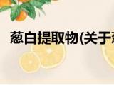 大家好,今天小方来说说一篇关于葱白提取物,关于葱白提取物部分内容简述的文章,那么现在就为大家来简单介绍下,希望对各位小伙伴们有所帮 浏览全文>>
