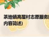 大家好,今天小方来说说一篇关于茶地镇高屋村志愿服务队,关于茶地镇高屋村志愿服务队部分内容简述的文章,那么现在就为大家来简单介绍下, 浏览全文>>