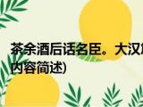 大家好,今天小方来说说一篇关于茶余酒后话名臣。大汉篇,关于茶余酒后话名臣。大汉篇部分内容简述的文章,那么现在就为大家来简单介绍下, 浏览全文>>