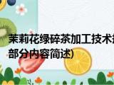 大家好,今天小方来说说一篇关于茉莉花绿碎茶加工技术规程,关于茉莉花绿碎茶加工技术规程部分内容简述的文章,那么现在就为大家来简单介绍 浏览全文>>
