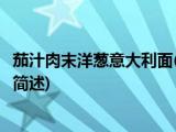 大家好,今天小方来说说一篇关于茄汁肉末洋葱意大利面,关于茄汁肉末洋葱意大利面部分内容简述的文章,那么现在就为大家来简单介绍下,希望 浏览全文>>
