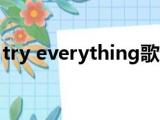 大家好,小活来为大家解答以上的问题。try everything歌词,try everything歌词这个很多人还不知道,现在让我们一起来看看吧!1、k bonnet 浏览全文>>