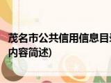大家好,今天小方来说说一篇关于茂名市公共信用信息目录,关于茂名市公共信用信息目录部分内容简述的文章,那么现在就为大家来简单介绍下, 浏览全文>>