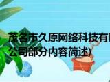 大家好,今天小方来说说一篇关于茂名市久原网络科技有限公司,关于茂名市久原网络科技有限公司部分内容简述的文章,那么现在就为大家来简单 浏览全文>>