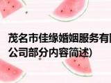 大家好,今天小方来说说一篇关于茂名市佳缘婚姻服务有限公司,关于茂名市佳缘婚姻服务有限公司部分内容简述的文章,那么现在就为大家来简单 浏览全文>>