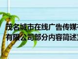 大家好,今天小方来说说一篇关于茂名城市在线广告传媒有限公司,关于茂名城市在线广告传媒有限公司部分内容简述的文章,那么现在就为大家来 浏览全文>>