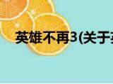 大家好,今天小方来说说一篇关于英雄不死,关于英雄不死部分内容简述的文章,那么现在就为大家来简单介绍下,希望对各位小伙伴们有所帮助。 浏览全文>>