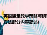 大家好,今天小方来说说一篇关于英语课堂教学策略与研究方法,关于英语课堂教学策略与研究方法部分内容简述的文章,那么现在就为大家来简单 浏览全文>>