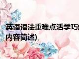 大家好,今天小方来说说一篇关于英语语法重难点活学巧练,关于英语语法重难点活学巧练部分内容简述的文章,那么现在就为大家来简单介绍下, 浏览全文>>