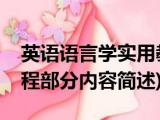 大家好,今天小方来说说一篇关于英语语言学实用教程,关于英语语言学实用教程部分内容简述的文章,那么现在就为大家来简单介绍下,希望对各 浏览全文>>