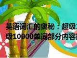 大家好,今天小方来说说一篇关于英语词汇的奥秘:超级10000单词,关于英语词汇的奥秘:超级10000单词部分内容简述的文章,那么现在就为大家 浏览全文>>
