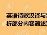 大家好,今天小方来说说一篇关于英语诗歌汉译与赏析,关于英语诗歌汉译与赏析部分内容简述的文章,那么现在就为大家来简单介绍下,希望对各 浏览全文>>