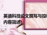 大家好,今天小方来说说一篇关于英语科技论文撰写与投稿,关于英语科技论文撰写与投稿部分内容简述的文章,那么现在就为大家来简单介绍下, 浏览全文>>