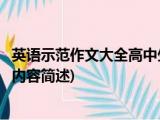 大家好,今天小方来说说一篇关于英语示范作文大全高中生,关于英语示范作文大全高中生部分内容简述的文章,那么现在就为大家来简单介绍下, 浏览全文>>