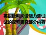大家好,今天小方来说说一篇关于英语批判阅读能力测试的探索研究,关于英语批判阅读能力测试的探索研究部分内容简述的文章,那么现在就为大 浏览全文>>