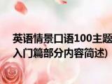 大家好,今天小方来说说一篇关于英语情景口语100主题 入门篇,关于英语情景口语100主题 入门篇部分内容简述的文章,那么现在就为大家来简 浏览全文>>