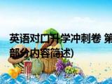 大家好,今天小方来说说一篇关于英语对口升学冲刺卷 第2版,关于英语对口升学冲刺卷 第2版部分内容简述的文章,那么现在就为大家来简单介 浏览全文>>