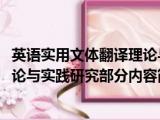 大家好,今天小方来说说一篇关于英语实用文体翻译理论与实践研究,关于英语实用文体翻译理论与实践研究部分内容简述的文章,那么现在就为大 浏览全文>>
