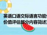 大家好,今天小方来说说一篇关于英语口语交际语言功能价值评估,关于英语口语交际语言功能价值评估部分内容简述的文章,那么现在就为大家来 浏览全文>>