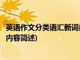 大家好,今天小方来说说一篇关于英语作文分类语汇新词典,关于英语作文分类语汇新词典部分内容简述的文章,那么现在就为大家来简单介绍下, 浏览全文>>